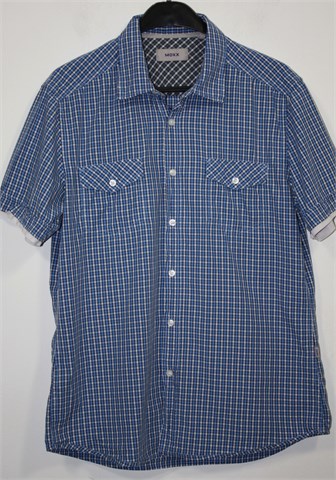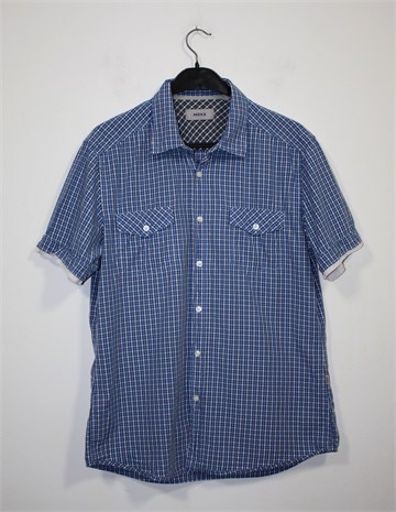 Mexx košulja sa kratkim rukavima, plavo-bijele boje sa prugastim uzorkom (kao na slici). Prednje kopčanje, džepići na prsima.