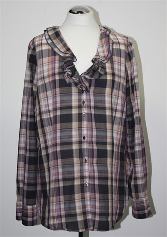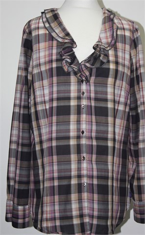 Mexx košulja sa dugim rukavima, prugasto-karirani uzorak u bojama kao na slici. Prednje kopčanje, ovratnik je ukrašen volančićima. Prednji i stražnji ušitci (strukirana). Lagan i mekan pamuk.