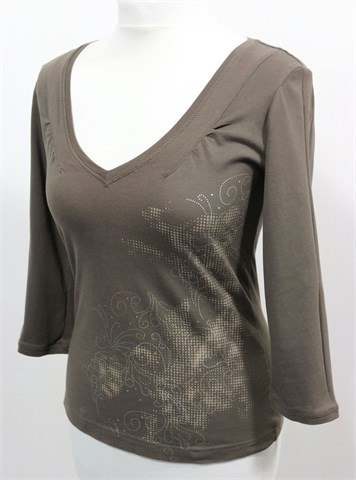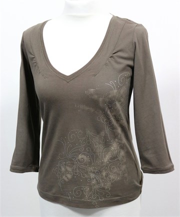 Mexx majica maslinasto-smeđe boje sa printom, rukavi su poludugi. Mekan i rastezljiv pamuk.