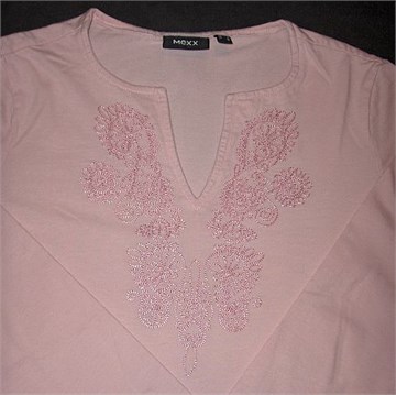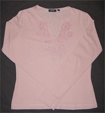 Dugi rukav, 98% pamuk, 2% elastin, efektna aplikacija oko izreza