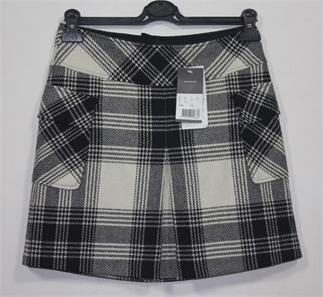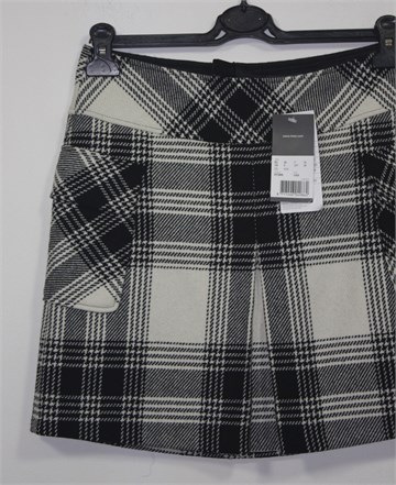 Mexx zimska suknja u kombinaciji crne i bijele boje, pomalo retro izgleda :) Bočni džepovi, falda sa prednje strane. Stražnji cif i gumbić. Podstavljena.