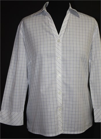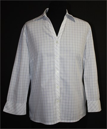 Michele Boyard košulja sa poludugim rukavima, bijele boje sa prugama (plavim i bež). Prednje kopčanje i prednji ušitci. Čvrst i nerastezljiv pamuk.