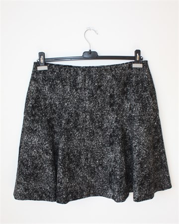 Michele suknja prošarano crno-sive boje (uzorak vidljiv na slikama). Gumica u struku (prilagodljiva širina - vidjeti mjere), podstavljena. Topli i mucasti materijal.