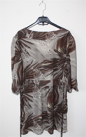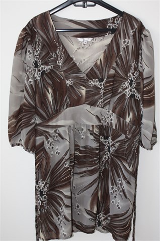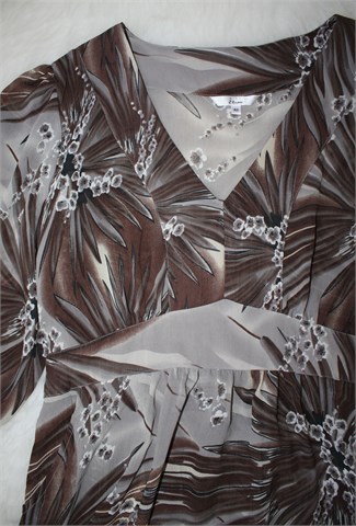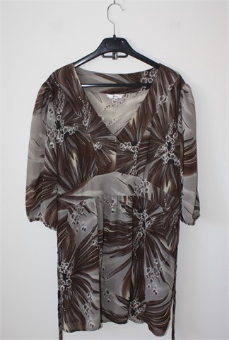Miss Etam bluza/tunika sa poludugim rukavima, šareni print (boje i uzorak printa vidljivi na slikama). Sa stražnje strane prošivena gumicama i ima dvije trakice za vezanje. Tanja i lagana, providna. Prednji bočni džepovi, blago rastezljiva.
