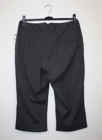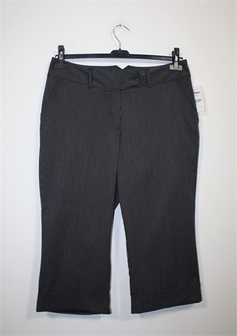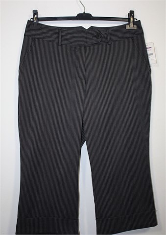 Miss Etam poluduge hlače sa prugama u kombinaciji crno-sive boje. Prednji cif i kopčanje, pasica za remen. Prednji bočni, stražnji ukrasni džepić. Tanje i rastezljive.