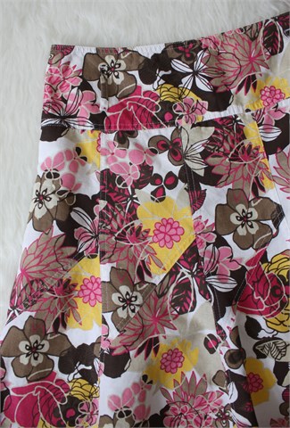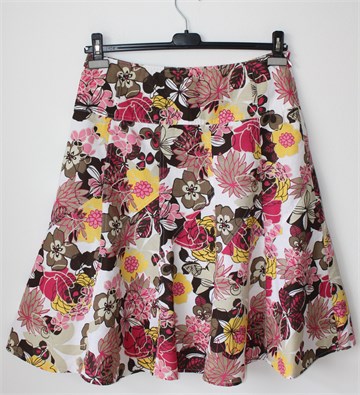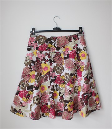 Miss Etam suknja bijele boje sa šarenim cvjetnim printom (boje i uzorak printa vidljivi na slikama). Bočni cif, ušice za remen na pasici. Podstavljena.