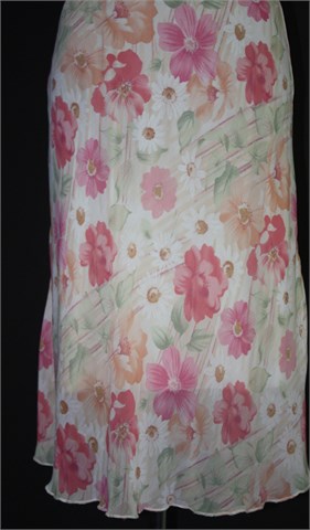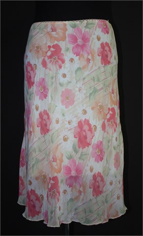 Miss Poem suknja nude-bež boje sa cvjetnim printom (boje i uzorci kao na slikama). Gumica u struku (prilagodljiva širina - vidjeti mjere), podstavljena. Tanja i lagana, rastezljiva.