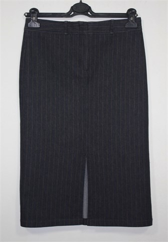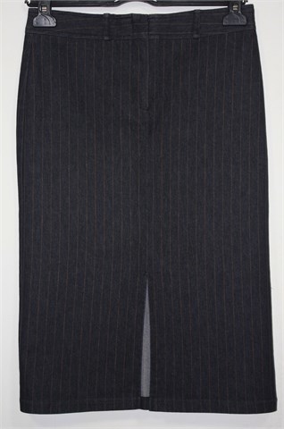 Miss Selfridge suknja od tanjeg trapera sa smeđe-bež prugama. Prednji cif i kopčanje, pasica za remen i prorez sa prednje strane. Blago rastezljiva.