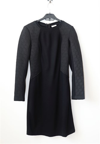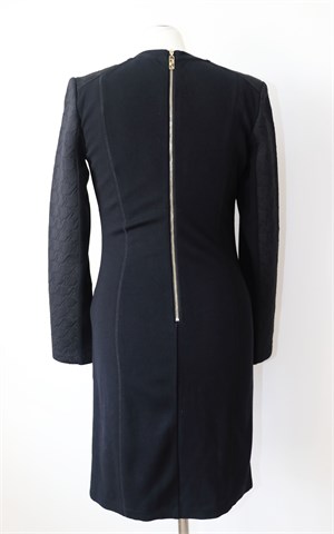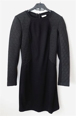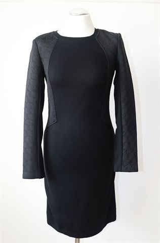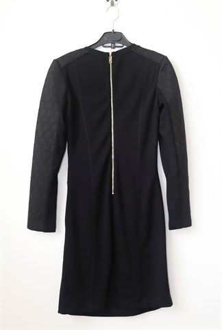 Miss Sixty haljina sa dugim rukavima, crne boje. Pojačanja u ramenima, stražnji cif. Materijal srednje debljine, rastezljiv.