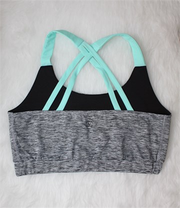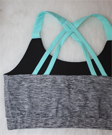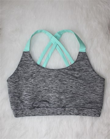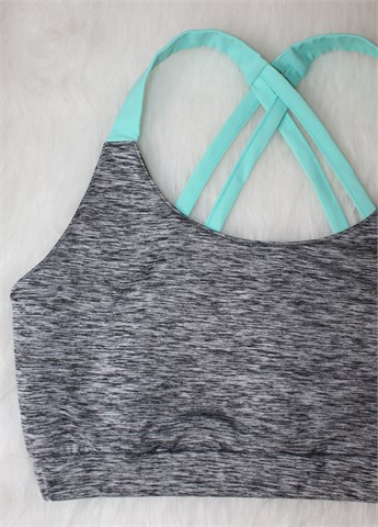 Missguided sportski topić prošarano sive boje, naramenice su svijetlo mint zelene boje. Guma ispod prsiju, dupli materijal sa prednje strane (podstava crne boje). Rastezljiv.