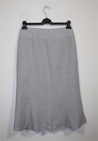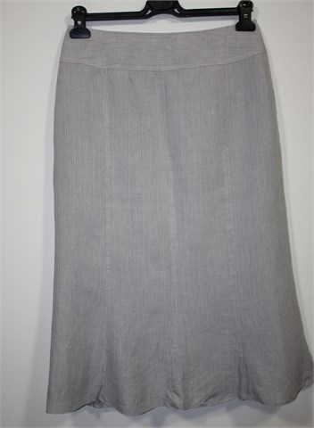 Modea suknja od lana midi dužine, svijetlo sive boje sa bijelim prugastim uzorkom. Bočni cif, podstavljena.