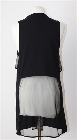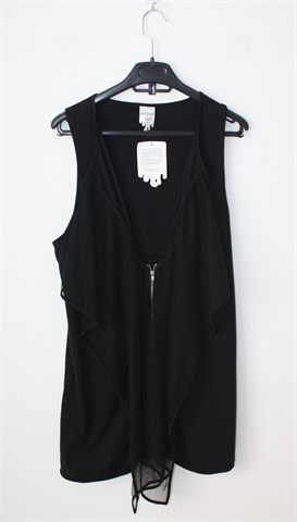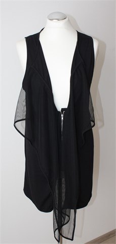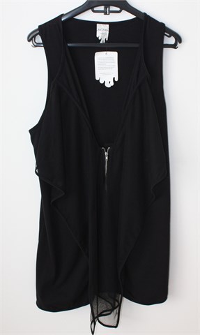 Monki duga majica/prsluk bez rukava, crne boje (style: Nelly Vest). Prednji cif, sa prednje strane i dno materijala stražnje strane tilasti/mrežasti crni materijal. Rastezljiva.