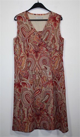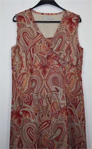 More & More haljina bez rukava sa šarenim paisley printom (boje i uzorak printa vidljivi na slikama). Prednji otvor i otvori oko rukava imaju sirove, cufaste rubove. Prednji i stražnji ušitci, blago strukirana, bočni cif. Podstavljena, nije rastezljiva.