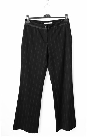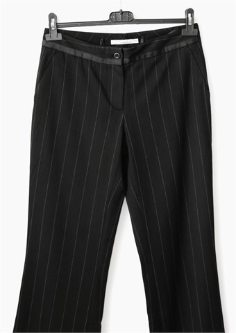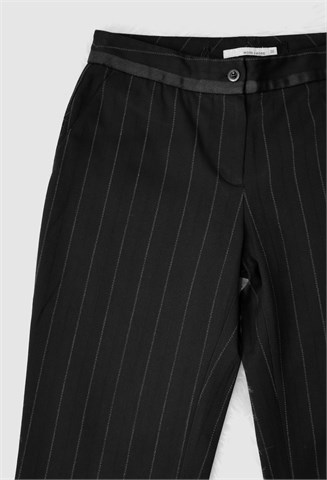 More & More hlače klasičnog kroja, crne boje sa svijetlim prugama. Prednji cif i kopčanje, ukrasna traka na pasici. Bočni džepovi, blago rastezljive.