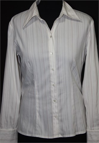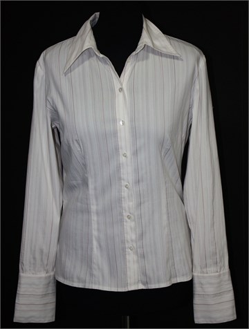 More&More košulja sa dugim rukavima, bijele boje sa svijetlim prugama (sivim i nude-rozim). Prednje kopčanje, strukirana. Tanja i rastezljiva.