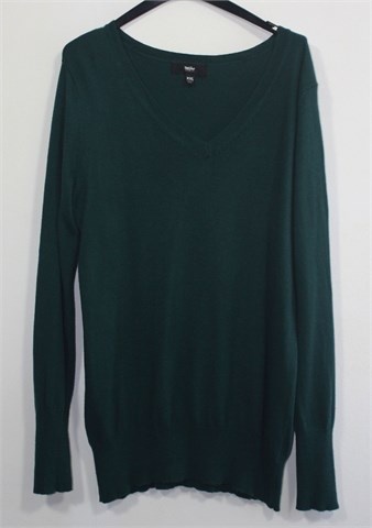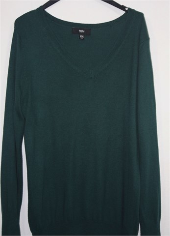 Mossimo pulover tamnije zelene boje sa prednjim V otvorom. Mekano, rastezljivo i tanje pletivo.