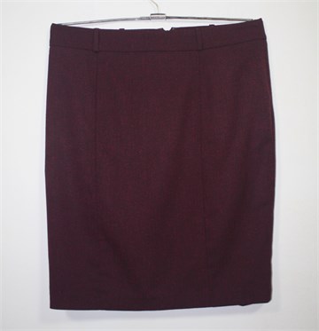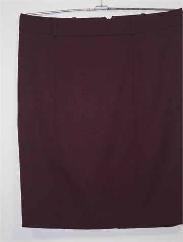 Mossimo (Target) suknja od laganog štofa, neobičan špricani uzorak tamnije ciklama-bordo boje. Suknja ima pasicu za remen, stražnji cif i kopčicu. Mali stražnji prorez, podstavljena.
