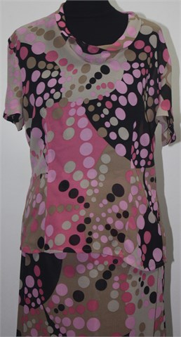Mura šareni kostim/komplet suknja i bluza sa točkastim uzorkom (boje i uzorci kao na slici). Lagana i prozračna viskoza.
