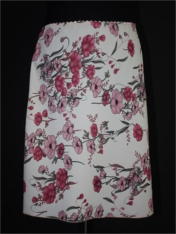 Orizon Muse suknja prljavo bijele boje sa cvjetnim printom (boje i print kao na slikama). Gumica u struku pa je širina prilagodljiva (vidjeti mjere). Tanji i blago rastezljiv materijal (nema podstavu).