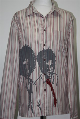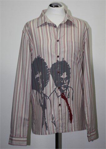 Mustang Jeans košulja sa dugim rukavima, bijele boje sa prugama i prednjim printom. Tanji materijal, nije rastezljiva. Kopčanje je na "muškoj" strani ali je vrlo unisex model (vidjeti mjere).