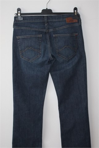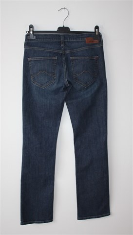 Mustang traper hlače plave boje, mjestimično blago ispranog izgleda (used look). Prednji cif i kopčanje, pasica za remen. Prednji i stražnji džepovi. Blago rastezljive.