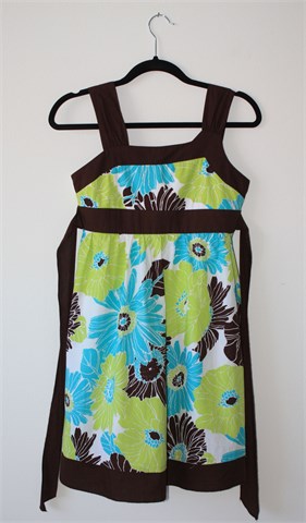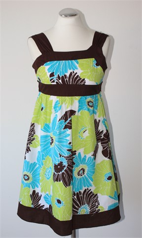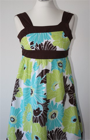 MyMichelle haljina bez rukava sa šarenim cvjetnim printom (boje i uzorak printa kao na slikama). Bočne trake za vezanje (vežu se po želji, sa prednje ili stražnje strane), stražnji cif. Podstavljena, za dno podstave našiven je bijeli til.