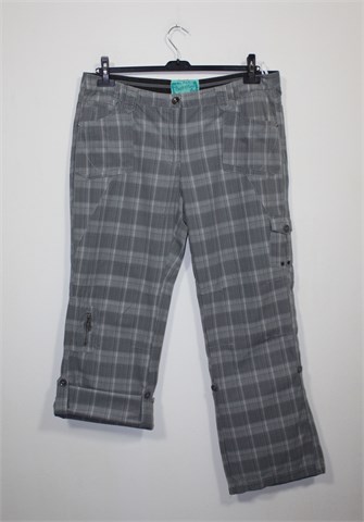 NKD Outfit Classic casual hlače sive boje sa prugastim uzorkom (kao na slici). Prednji cif i kopčanje, pasica za remen. Prednji i stražnji džepovi, mali džepići na nogavicama. Tanji i lagan pamuk, idealne za toplije vrijeme (nogavice se mogu nositi i kao kraće - kao na slici).