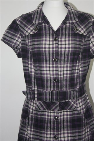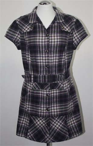 NKD Outfit topla tunika sa kratkim rukavima, u kombinaciji ljubičaste, sive i crne boje. Prednje kopčanje, bočni džepovi i remen u struku. Mekan, mucast, deblji i topli materijal, odlična za slojevito oblaćenje.