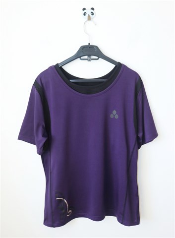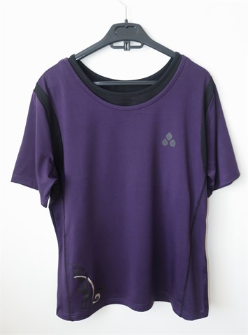 NKD Sports function sportska majica ljubičaste boje sa detaljima u crnoj boji. Unutar majice je ušiven crni topić sa gumom ispod grudi. Rastezljiv materijal.