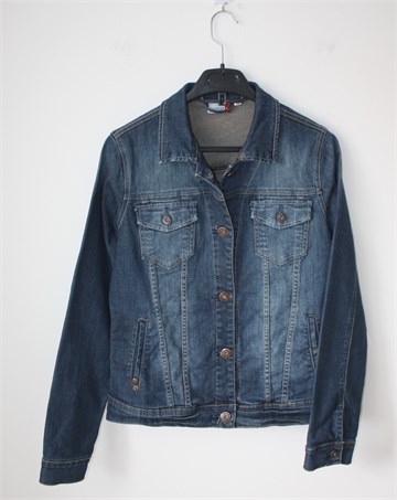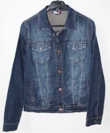 NKD Outfit traper jakna plave boje, mjestimično ispranog izgleda (used look). Prednje kopčanje, bočni džepovi i džepići sa gumbom na prsima. Blago rastezljiva.
