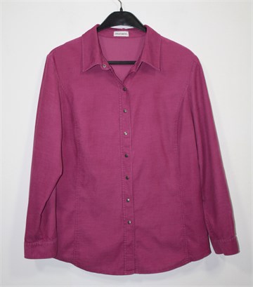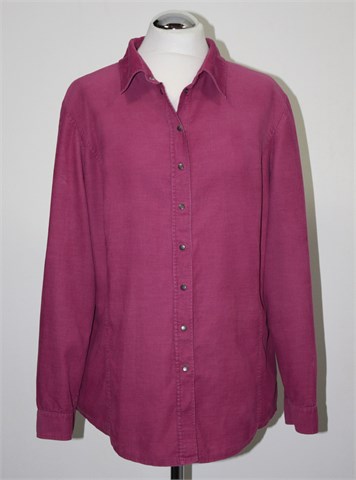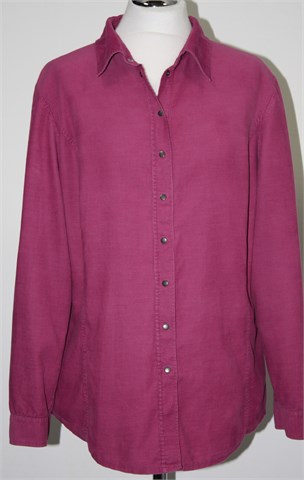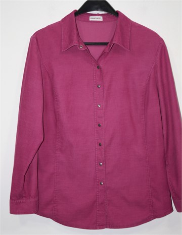 Baumann košulja od sitnog i mekanog samta, boja je tamnije roza - recimo boja maline. Dugi rukavi, prednje kopčanje sa drukerima. Prednji i stražnji ušitci, blago strukirana. Mekan i nerastezljiv samt.