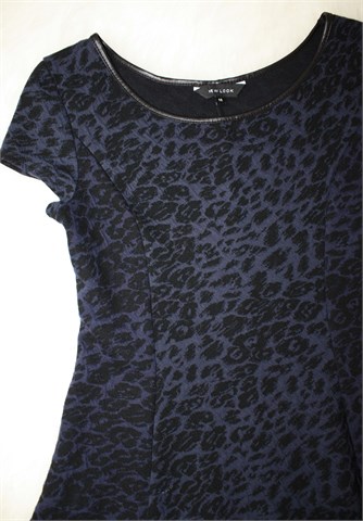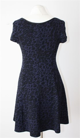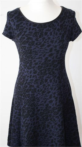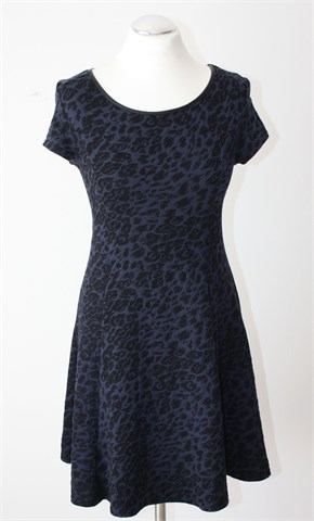 New Look haljina sa kratkim rukavima, crno-plave boje sa uzorkom na materijalu (vidljivo na slikama). Materijal srednje debljine, rastezljiv.