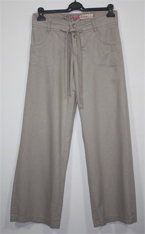 New Look hlače bež boje, odlična kombinacija lana i viskoze. Hlače imaju prednje kopčanje i pasicu za remen. U pasici je špagica koja se može zavezati sa prednje strane.