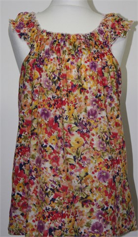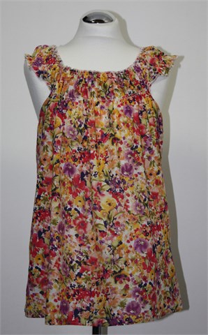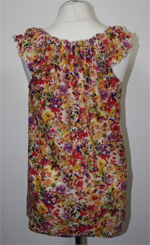 New Saks Woman bluza bez rukava sa šarenim cvjetnim printom. U gornjem dijelu prošivena gumicama pa je širina prilagodljiva. Lagan i prozračan materijal.