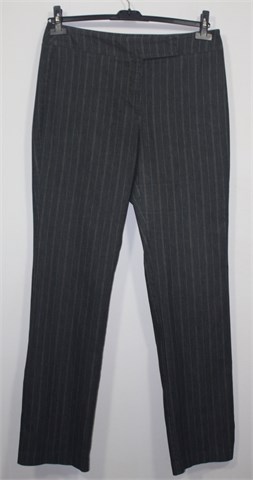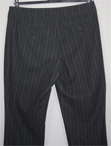 New York & Company hlače klasičnog kroja, materijal je lagani traper sive boje sa svijetlim prugama. Prednji cif i kopčanje, stražnji ukrasni džepovi. Lagan i rastezljiv materijal.