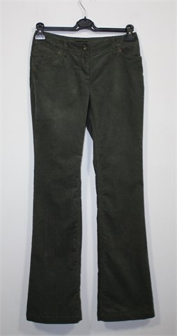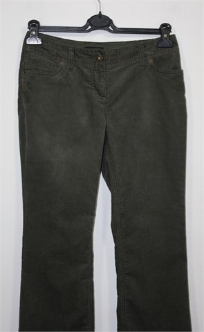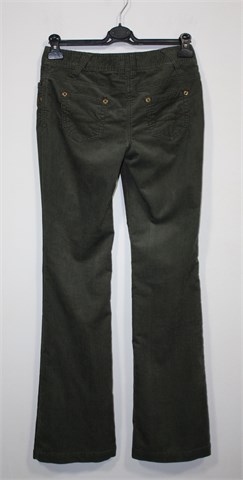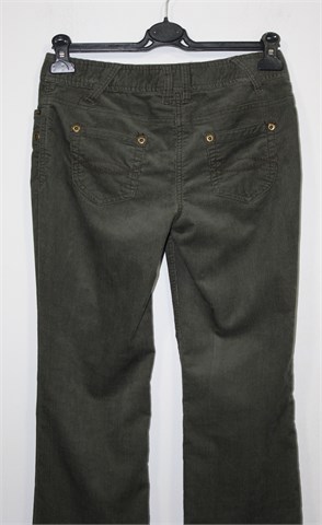 Next hlače od tanjeg i mekanog samta maslinasto zelene boje. Prednji cif i kopčanje, pasica za remen. Prednji i stražnji džepovi, blago rastezljive. Nogavice šire pri dnu (vidjeti mjere).