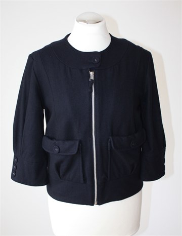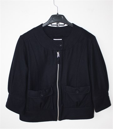 Next kraći kaput sa poludugim rukavima, tamno plave boje. Prednje kopčanje sa cifom i gumbićem uz vrat, prednji bočni džepovi. Po tri gumba na kraju svakog rukava, podstavljena (podstava je sive boje sa bijelim točkicama).