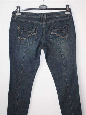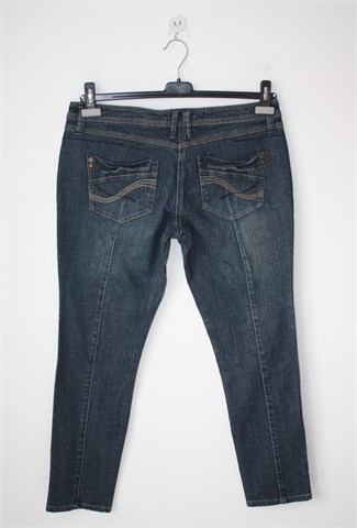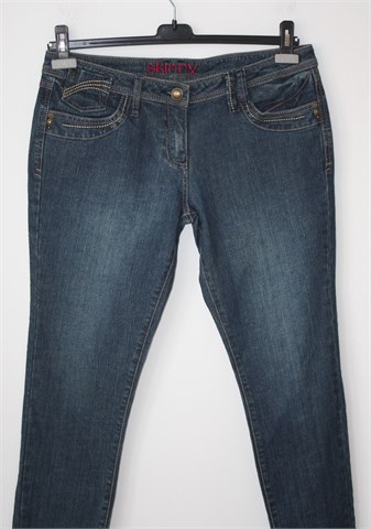 Next traper hlače plave boje, blago ispranog izgleda (skinny model). Prednji cif i kopčanje, pasica za remen. Prednji i stražnji džepovi, blago rastezljive.