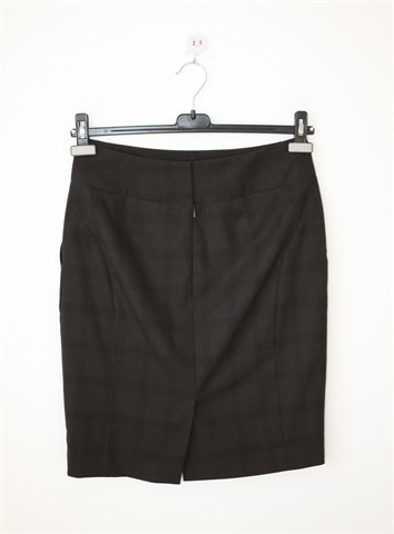 Next suknja tamno smeđe boje sa uzorkom na materijalu (vidljivo na slikama). Stražnji cif i kopčanje, prednji bočni džepovi. Podstavljena, mali stražnji rasporak.