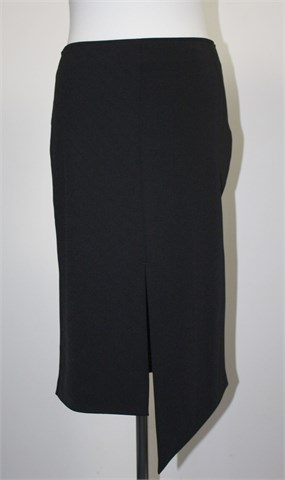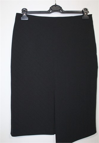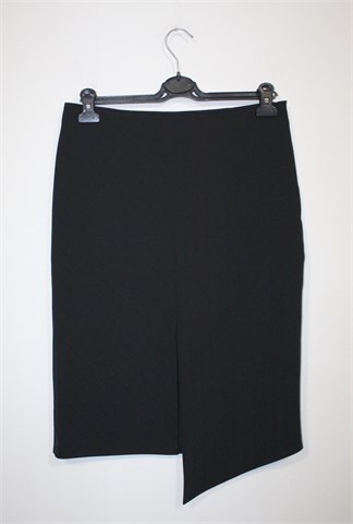 Niama Woman suknja crne boje sa diskretnim prugama. Sa prednje strane prorez i jedna strana je duža (vidljivo na slici). Stražnji cif, blago rastezljiva. Čvrst ali lagan materijal.