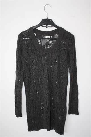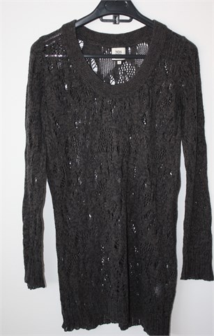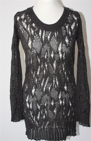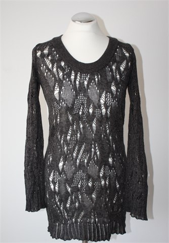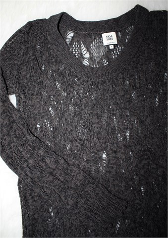 Noa Noa duža vesta/tunika sa rupičastim uzorkom prošarano crno-sivo/smeđe boje. Tanje, rastezljivo i providno (rupičasto) pletivo.