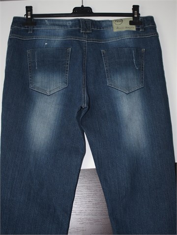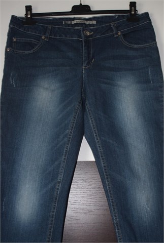 OVS (72D) skinny poluduge traper hlače, traper srednje plave boje mjestimično ispranog i ocufanog izgleda (tvornički). Hlače imaju prednji cif i kopčanje, pasicu za remen. Prednji i stražnji klasični džepovi.