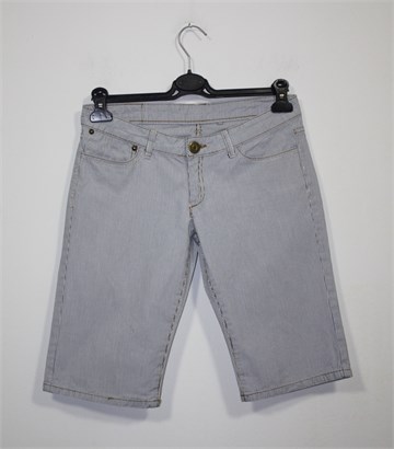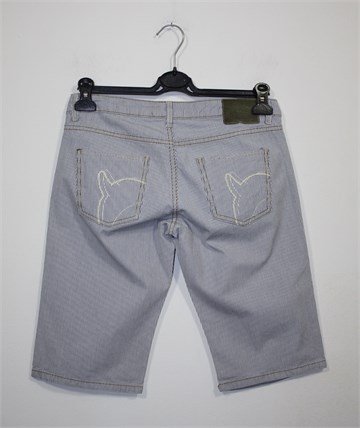 OVS pamučne bermude bijele boje sa plavim prugama. Prednji cif i kopčanje, pasica za remen. Prednji bočni, stražnji klasični džepovi. Čvrst i nerastezljiv pamuk.
