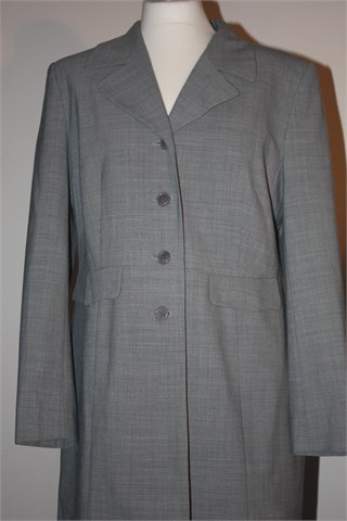 Sako je klasičnog, dužeg kroja sa prednjim kopčanjem i bočnim (još uvijek zašivenim) džepovima. Blagi jastučići u ramenima, podstavljen.