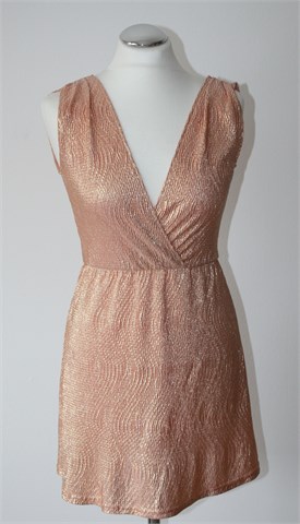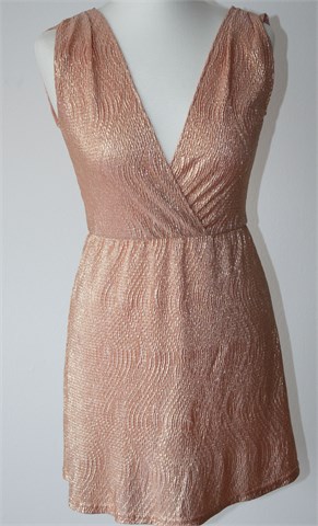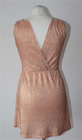 Oh My Love London haljina bez rukava, prljavo roze boje sa zlatnim sjajem na vanjskoj strani materijala (materijal ima reljefni uzorak - vidljivo na slikama). Gumica ispod prsiju, tanka i lagana. Rastezljiva.