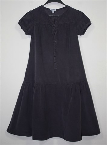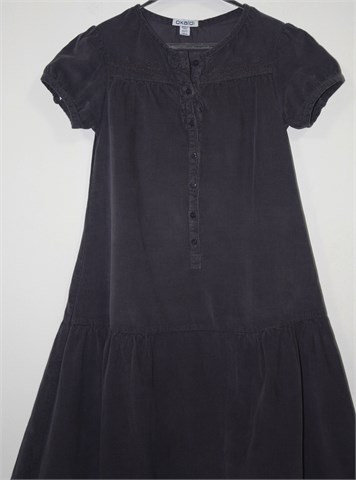 Okaidi haljina/tunika od samta sive boje. Kratki rukavi, prednje kopčanje sa gumbima (oko kopčanja ukrasni volančići). Mekan i tanji samt.