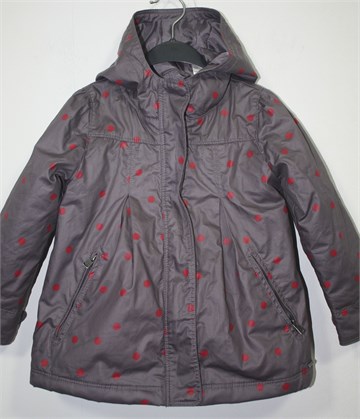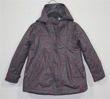 Okaidi jaknica za prijelazno vrijeme, boja je vrlo neobična - zagasito ljubičasto-siva sa crvenkastim točkicama. Prednji cif, bočni džepovi sa cifovima, kapuljača. Vrlo tanko punjena, nepropusna.