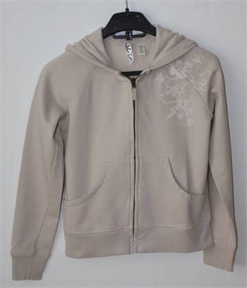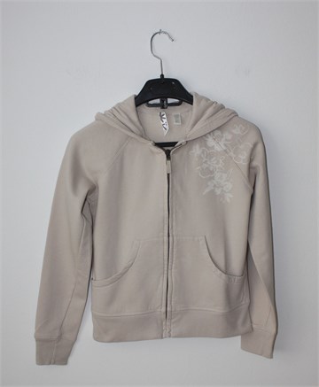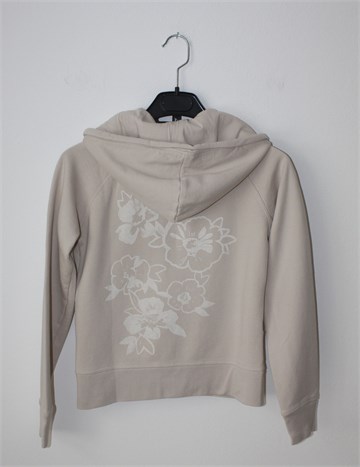 Okaidi majica sa dugim rukavima svijetlo bež boje. Prednje kopčanje sa cifom, bočni džepovi, kapuljača. Mekana, mucasto podstavljena. Cvjetni print sa prednje i stražnje strane.