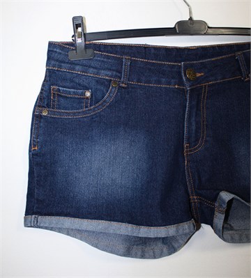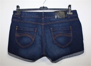 Okay kratke hlače od trapera, tamnije plave boje mjestimično ispranog izgleda (tvornički). Prednji cif i kopčanje, pasica za remen. Prednji i stražnji klasični džepovi. Blago rastezljive.
