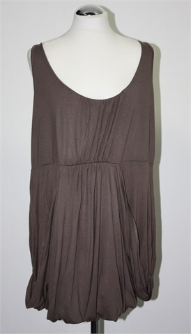 Okay tunika bez rukava smeđe boje. Sa prednje strane ukrasni prošivi i duboki džep, pomalo balon kroja. Podstavljena, mekana i rastezljiva.
